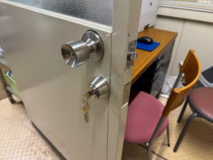会社の重要機密が保管されている書庫への出入り口ドアです。