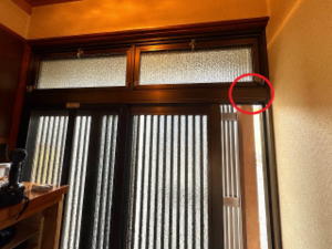 新日軽の宝樹と言う普通の玄関引戸ですが上左写真の赤丸部分、