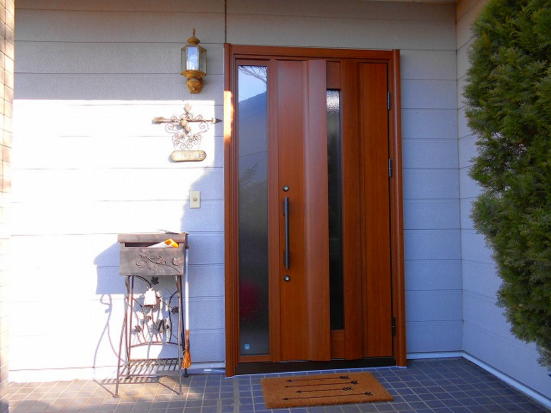 久しぶりに見た木製の板チョコタイプの玄関ドアでしたが、 高性能なドアへとリフォームされました。 木目調だけは引き継いだようです。 |